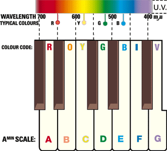 A, at red. Other less sophisticated colour-music codes have used C as a starting