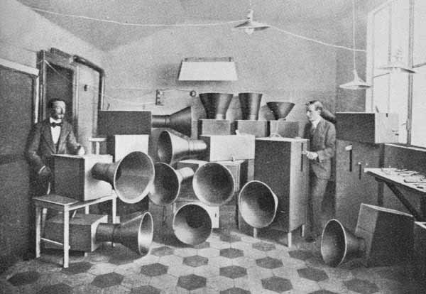 Let us cross a great modern capital with our ears more alert than our eyes, and we will get enjoyment from distinguishing the eddying of water, air and gas in metal pipes, the grumbling of noises that breathe and pulse with indisputable animality, the palpitation of valves, the coming and going of pistons, the howl of mechanical saws, the jolting of a tram on its rails, the cracking of whips, the flapping of curtains and flags. We enjoy creating mental orchestrations of the crashing down of metal shop blinds, slamming doors, the hubbub and shuffling of crowds, the variety of din, from stations, railways, iron foundries, spinning wheels, printing works, electric power stations and underground railways.