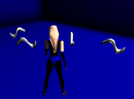 In the figure on the right you can see two things, which are non-standard: The white objects in the approximate shape of a sine wave are objects called "siba_sine". They move slowly and produce a sound which can be changed at will. Download the zipped package siba_decoration2 here (338 kB) or download the complete structure of objects, sounds and scripts which can be edited and has to be compiled then. Drag the siba_decoration2.u file into your UnrealTournament/System folder and add the line EditPackages=siba_decoration2 to the UnreaTournament.ini. The player pawn in the front is a custom player pawn whose footstep sounds have been set to "None". |