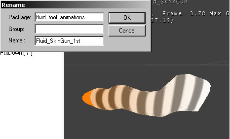It is important that you save your animation package now. By saving it you create a package called fluid-tool-animations.ukx in the Animations folder. From now on this animation should be available for the Editor, whenever you open it.