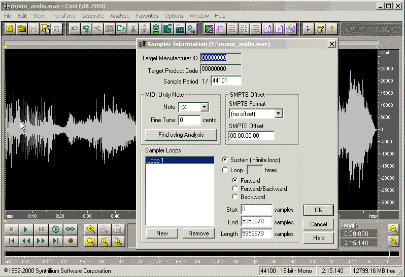 That's it for SoundForge users. CoolEdit users encounter a similar situation with a slightly different look.